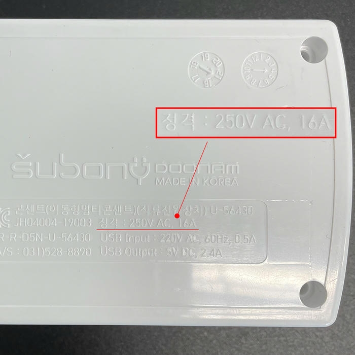 많은 소비자가 멀티탭 본체 뒷면에 표기된 ‘250V 16A’라는 문구만 보고 고용량 멀티탭이라고 판단합니다. 하지만 이 표기만으로 실제 안전성을 판단하는 것은 매우 위험합니다.