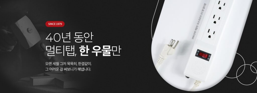 1979년부터 약 47년 동안 다른 제품에 눈을 돌리지 않고 오직 멀티탭만 연구하고 개발해 온 회사입니다.