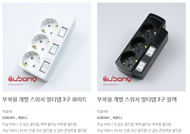 공간을 깔끔하게 정리하는 3구 부착형 개별 멀티탭